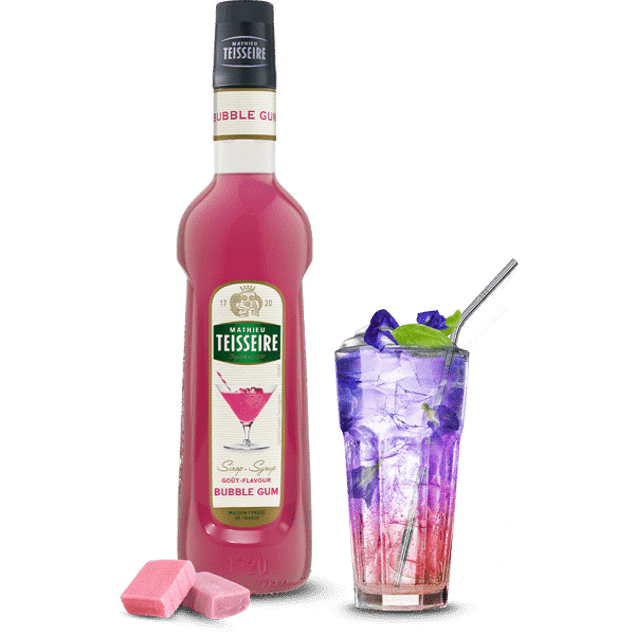 Mathieu Teisseire Bubblegum Syrup beautiful recreates the much loved, nostalgic tutti frutti flavour. With it's sweet candy taste, hints of cooked sugar and notes of vanilla it makes a great addition to your drinks.
