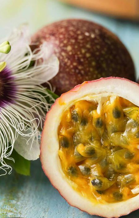 Маракуйя — это разновидность ягод с твердой внешней кожицей и сочной, наполненной семенами сердцевиной. Родом из Америки, считается, что они были выращены ацтеками, а плоды были привезены в Европу испанскими миссионерами в 1629 году.