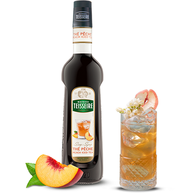 Сироп Mathieu Teisseire Peach Iced Tea идеально сочетает в себе сочный вкус свежих персиков и освежающий вкус чая со льдом. Легкие цитрусовые, красивый цветочный аромат и золотисто-апельсиновый цвет придают неповторимый вкус чаю, газированным напиткам, лимонадам и коктейлям.